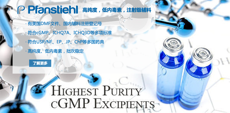 “熱烈祝賀Pfanstiehl的注射級甘氨酸Glycine(G-140)喜獲CDE登記號F20250000403, 這是Pfanstiehl產品獲得的第18個CDE登記號!”甘氨酸在醫藥輔料制劑中應用廣泛,, 可作為緩沖劑,增溶劑,穩定劑等,具有諸多優勢。Pfanstiehl秉承一貫高品質理念,為滿足全球生物制藥行業對于高品質甘氨酸的需求,隆重推出的注射級甘氨酸Glycine (G-140), 具有超高純度,超低內毒素,超低金屬殘留的特點,單獨檢測29種金屬離子,并且新增DNA,RNA,DNA酶,RNA酶和脂肪酶,亞硝酸鹽等多項質量指標的檢測,符合多國藥典規定(USP, EP, BP, JPE, ChP),可用于生物治療性藥物和疫苗的生產。產品信息:· 產品名稱:Glycine, High Purity, Low Endotoxin, Low Metals, USP, EP, BP, JPE, ChP (G-140)· 中文名稱:甘氨酸· 分子式:C2H5NO2· 分子量:75.07 g / mol· CAS號:56-40-6· 產品貨號:G-140產品特點: · 超高純度,超低內毒素,超低微生物含量,超低金屬雜質殘留· 質量指標新增DNA,RNA,DNA酶,RNA酶,脂肪酶和亞硝酸鹽檢測· 符合多國藥典:USP, EP, BP, JPE, ChP· 符合ICH Q3D標準· 符合GMP標準· 已獲DMF和CDE登記號 產品應用:· 緩沖劑· 穩定劑· 增溶劑如果您對Pfanstiehl注射級別Glycine G-140感興趣,歡迎聯系Pfanstiehl 中國區代理商北京西美杰科技有限公司獲得如下詳細的產品概況說明文件和測試樣品。Pfanstiehl Inc.最新產品系列如下,歡迎聯系北京西美杰科技有限公司獲取100g裝免費樣品。北京西美杰科技有限公司為Pfanstiehl中國代理,為客戶提供完善的技術支持與售后服務。歡迎撥打西美杰客服電話400-050-4006或者登陸網站www_xmjsci_com.daoqumsh.com.cn了解更多信息。 更多>